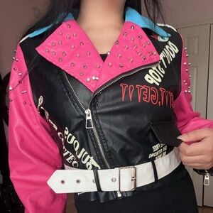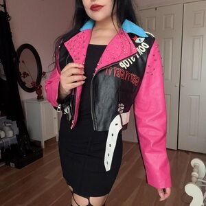π Pink and black biker jacket