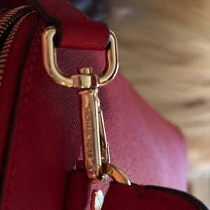 Elegant scarlet crossbody by Michael Kors. Features gold hardware. Perfect for any occasion.