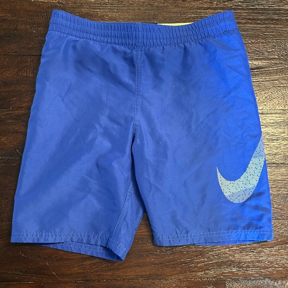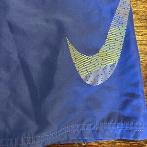 Bold royal blue shorts with signature Nike swoosh. Drawstring and elastic waist. Lined. In great condition.