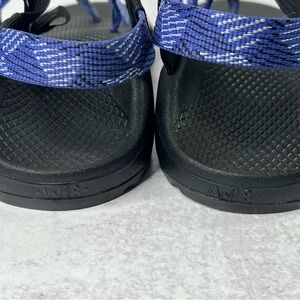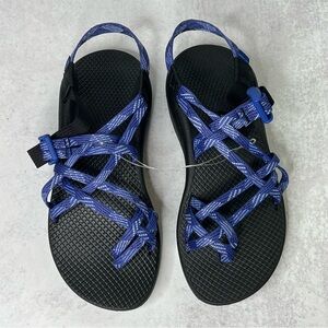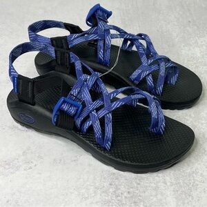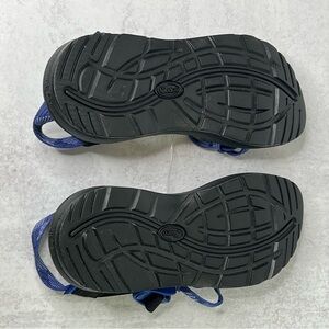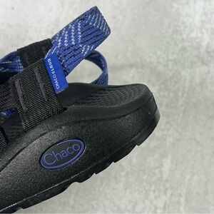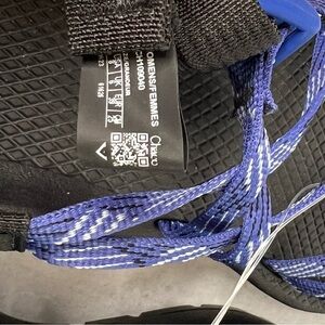 Chaco sandals with blue straps and black sole. Ideal for everyday wear.
