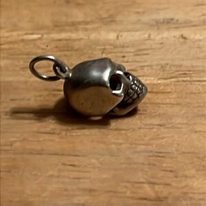 Stylish silver skull pendant. Perfect for adding an edgy touch to any outfit.