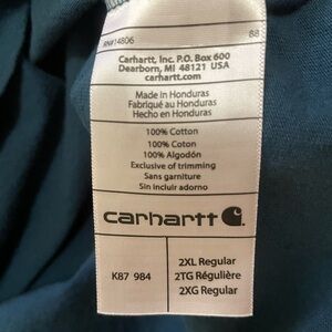 • Features: Chest pocket with Carhartt logo, heavyweight cotton, durable stitching