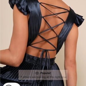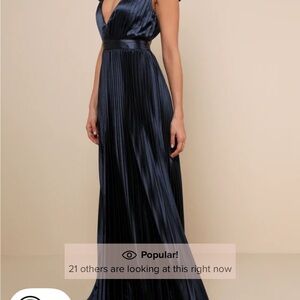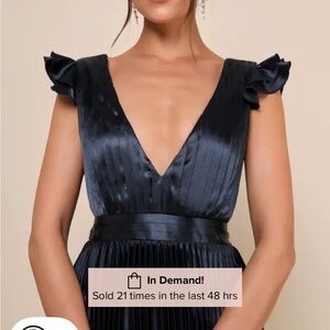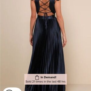 You're sure to be greeted with compliments from every direction when you arrive wearing the Lulus Exceptional Drama Navy Blue Satin Lace-Up Pleated Maxi Dress! Sleek woven satin, with luxe accordion pleats throughout, shapes a sleeveless bodice with ruffl