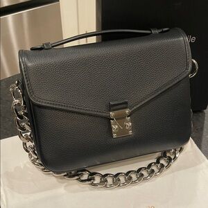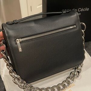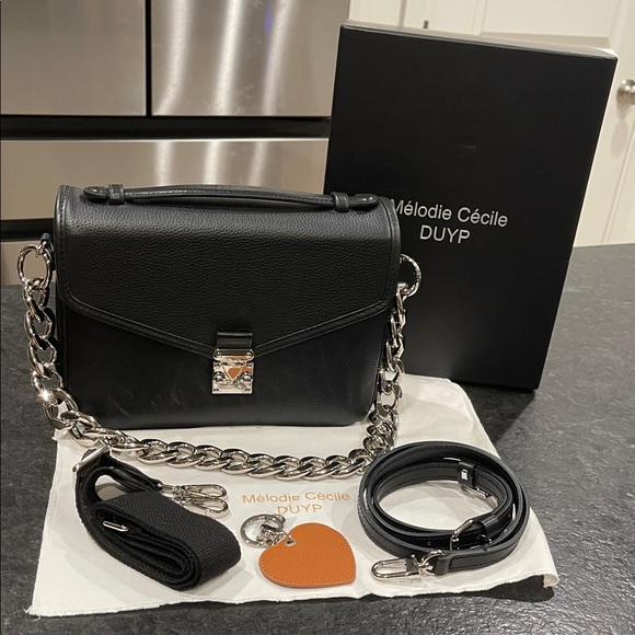 Elevate your style with the black shoulder bag. Featuring a sleek design and a sturdy chain strap, this bag is perfect for any occasion. The elegant black color adds a touch of sophistication to your outfit. Brand Mélodie Cécile DUYP