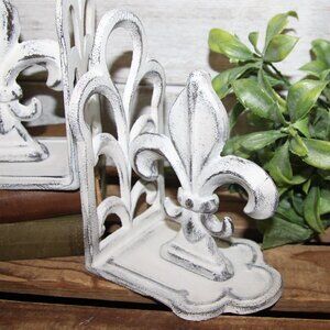 cast iron, fleur de lis, shabby chic, french country, distressed, bookends, finial