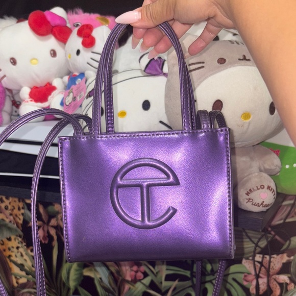 Elegant Telfar mini bag in shimmering violet. Perfect for adding a touch of luxury.