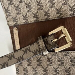 Elegant belt bag with iconic MK pattern. Features rich brown accents. Ideal for everyday use. Brand new never used. In pristine condition, size L/XL.