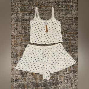 NWT! Size XL SKIMS soft lounge lace cami & short set in blue garden print.