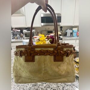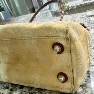 Pale yellow vintage coach Hampton, very good condition. Light staining at the base of the purse .