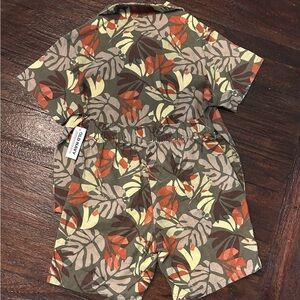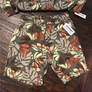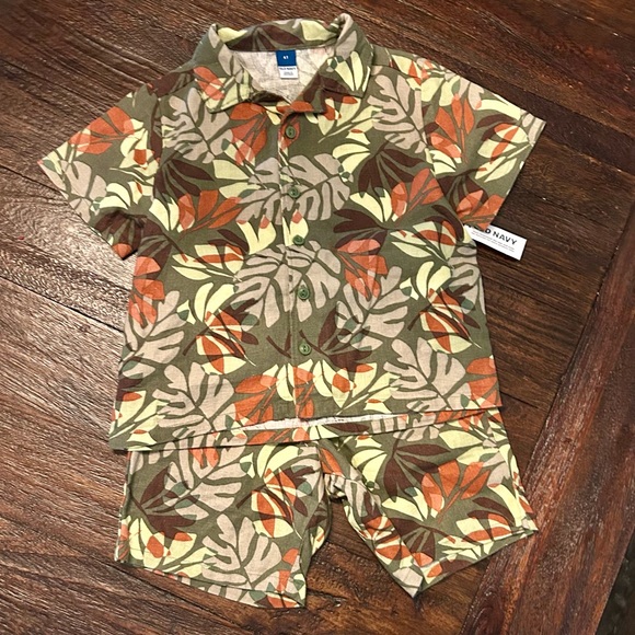 Vibrant leaf pattern. Short-sleeve top and shorts. Soft and comfy fabric.