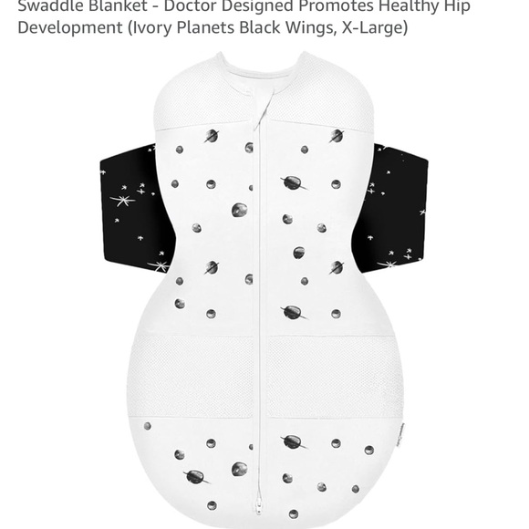 Happiest Baby SNOO Sleep Sack - 100% Organic Cotton Baby Swaddle Blanket - Doctor Designed Promotes Healthy Hip Development (Ivory Planets Black Wings, X-Large)