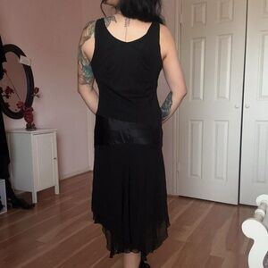 Black midid asymmetrical dress by Jonathan Martin • Y2K drop waist • Cowl neckline • Lightweight sheer 100% silk material with soft polyester lining