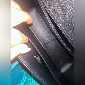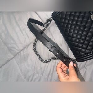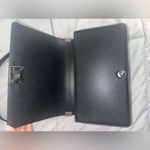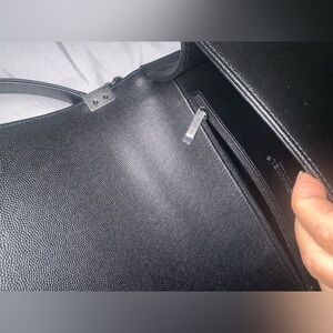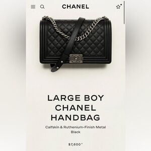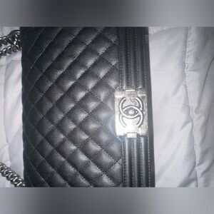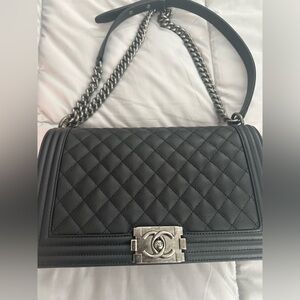 LARGE CHANEL BOY BAG. Excellent condition - worn once! Comes with box and dust bag. Plastic wrap is still on the inside zipper (pictured). Caviar with a Ruthenium-finish metal. Essentially brand new, in store it is $7,600.