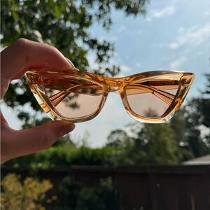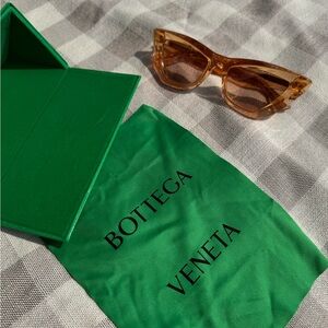 Gorgeous Botega Veneta sunglasses. Juicy monochromatic lenses and frames (that make everything look more vibrant). Case is an incredible Kelly green prism that seamlessly magnetically closes. Fell in love with them but only wore them a few times. π