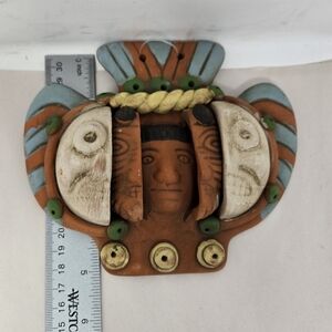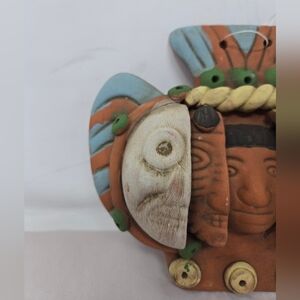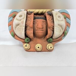 This unique terracotta clay pottery piece depicts the three aging faces of the Aztec Mexican man, making it a one-of-a-kind collectible for those interested in Mexican culture. The intricate details and craftsmanship of this piece showcase the rich history and traditions of Mexico, and it is sure to be a conversation starter in any collection.