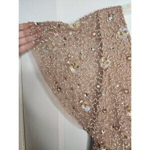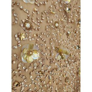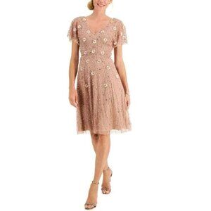 Adrianna Papell Size 6 Blush Pink Floral Beaded Party Dress Flutter Sleeve