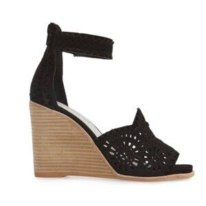 Jeffrey Campbell Wedge Sandals Shoes Del Sol Laser Cut Suede Leather Ankle Strap Open Toe Black