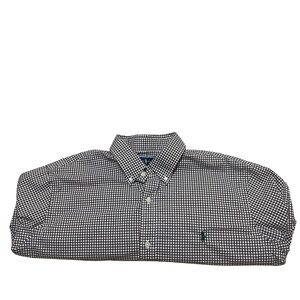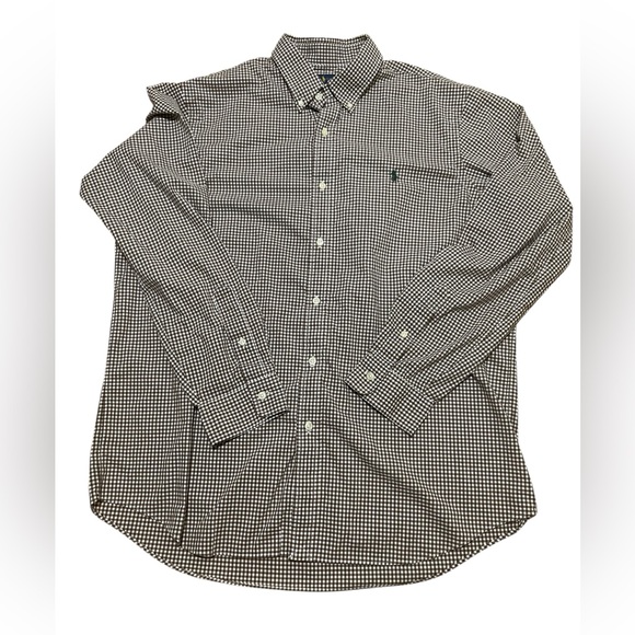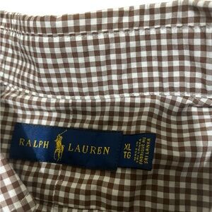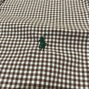 Elevate your wardrobe with this Ralph Lauren Men’s XL Button-Down Shirt in a timeless brown and white gingham check pattern. Designed in a classic fit, this shirt combines Ralph Lauren’s signature preppy style with everyday comfort.
