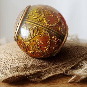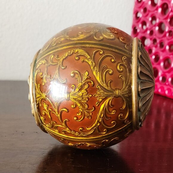 Vintage Decorative Orb: 5" Antique Gold Scrollwork Sphere, Renaissance Old World