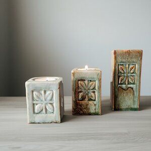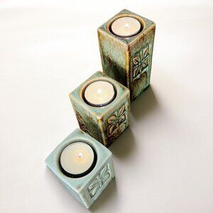 Vintage Ceramic Candle Holders Set: Sage Green Glazed Tealight Holders, Set of 3