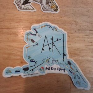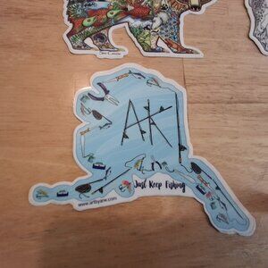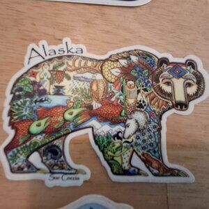 6 Alaskan stickers, never used. Price tags are on the backsides. One of the Alaska state stickers is a little bent, all of the other stickers are like new.