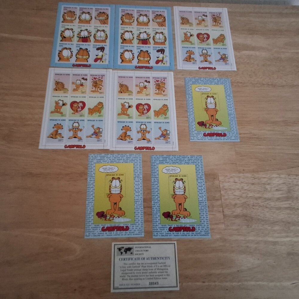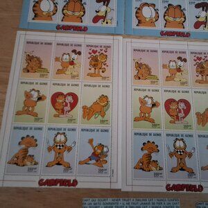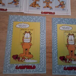 PLEASE NOTE: 2 of the 1999 Garfield Sheet Republique De Guinee have small marks/discoloring marks on the backside of some stamps. PLEASE SEE PICTURES!