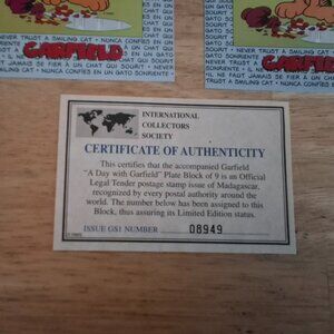 - 1999 Garfield Sheet With a Certificate of Authentication Mali – 9 stamps
