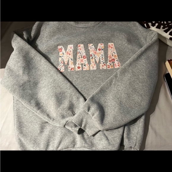 Cozy gray sweatshirt with floral 'MAMA' print.