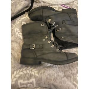 ROXY 8.5-9 Womens ember black/Gray Lace Up Boots Fold Over Sweater knit Insides Shoes.