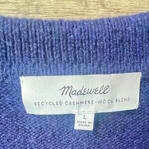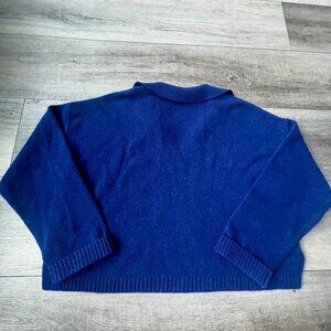 Madewell Recycled Cashmere Wool Blend Cropped Cobalt Blue Sweater Office Casual. Size large. So soft! Excellent condition with no stretching/holes. Slight thinning of fabric near the bottom of the v neck (see photo) hard to notice but wanted to mention. Slightly oversized.