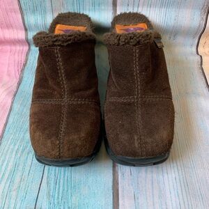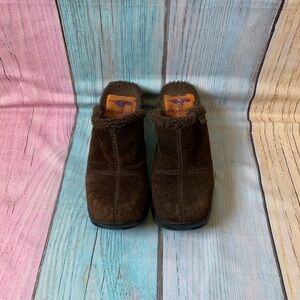 Cozy brown suede slip-on clogs with a plush lining. Perfect for casual wear. In good pre owned condition. Size 6. Super comfy pair of shoes! Heel is 2.5 inches