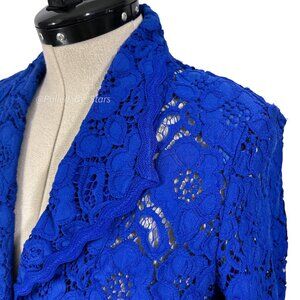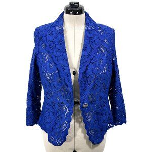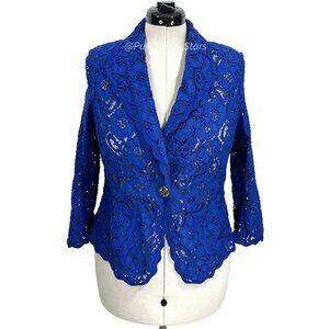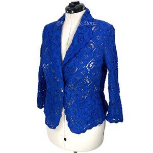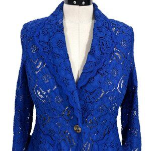 ESCADA Solid Blue Floral Lace 3/4-Sleeve Button-Front Collared Blazer Size 38: