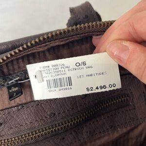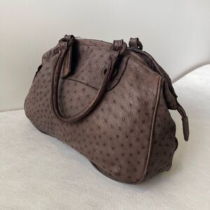 Christian Peau Brown leather ostrich bag. Peep the cutest snail on a mushroom charm!