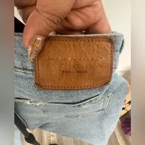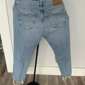Stylish light blue jeans. Distressed design. Perfect for casual wear.