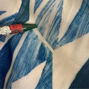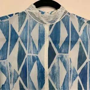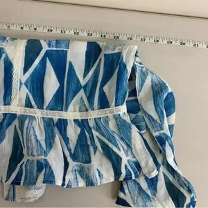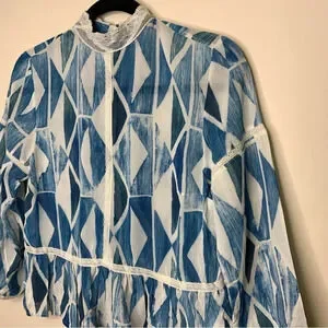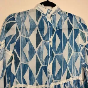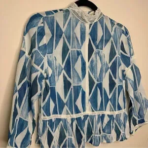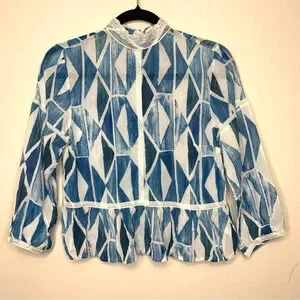 Anthropologie Setevie May Blue White geometric Print Chiffon Blouse Size XS B033