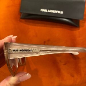 Elegant beige sunglasses by Karl Lagerfeld. Sleek and modern design.