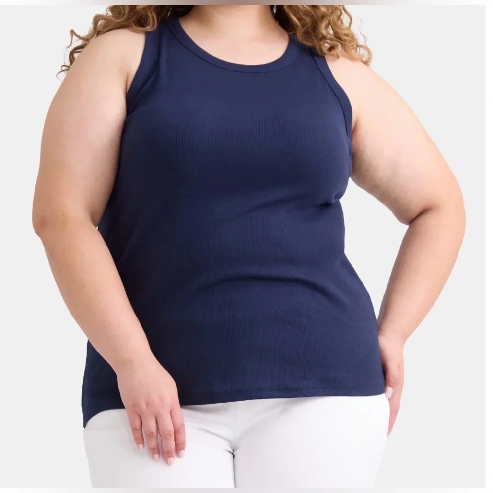 A versatile tank top is always in consideration when it comes to your outfit of the day. Terra & Sky's High Neck Rib Tank Top is an effortless, easy-fit essential that can be worn solo with jeans or joggers and layered under your hoodie, jacket or shirt. The high-neck design is stylish with a racerback-inspired detail for support and ease of movement. This tank top is crafted in cotton blend with stretch fabric for a must-have foundation.