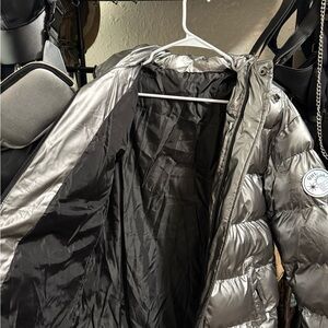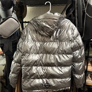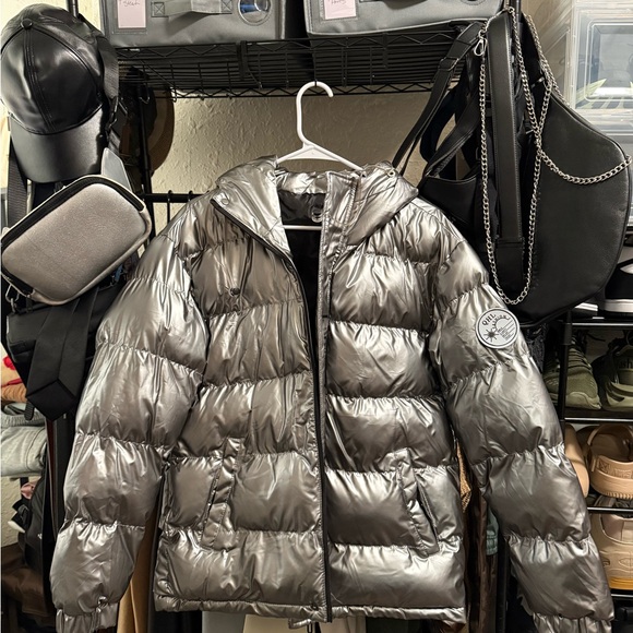 Stay warm and stylish this winter with this silver men’s puffer jacket. Brand new without tags never worn. The size is a medium however it runs more like a small.