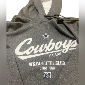 Made from a soft, fleece-lined fabric, this hoodie features a bold “Cowboys Dallas” front graphic with the classic star logo and “NFC EAST FTBL CLUB Since 1960” printed below.