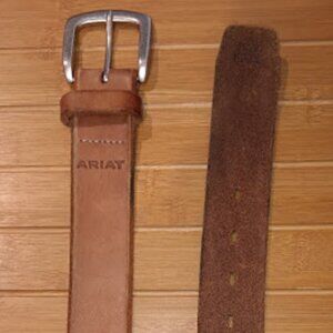 Ariat men's brown genuine leather belt with a beveled edge and embroidered logo. This Western-themed belt features a solid brown color, silver tone hardware, and a 1.5" width, making it a practical and fashionable accessory for men. The belt is designed with a buckle and logo accents, adding a touch of sophistication to any outfit. With a size 42 and regular fit, this belt is perfect for those who appreciate quality and style in their accessories.