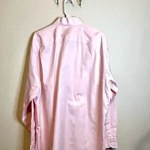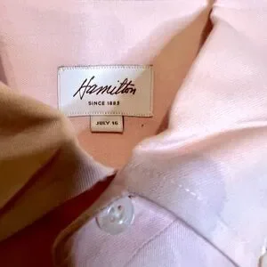 Stylish light pink shirt by Hamilton. Ideal for smart occasions. 10% cotton Collar: 17” Pit to pit: 27” Shoulder: 22” Arm: 32” Length: 34”