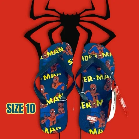 NEW! Marvel Avengers Spiderman Flip Flops Sandals. Mens Size 10. NEW with Tags!