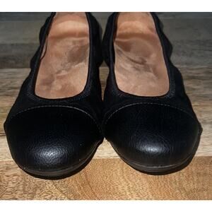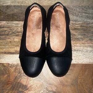 The Vionic Tina Black Leather Ballet Flats are versatile and comfortable shoes for women in size 7 (UK 5, EU 38). These slip-on flats are perfect for casual, workwear, or business occasions, providing arch support and overall comfort with their orthopedic design. The leather lining and upper material ensure durability, while the synthetic outsole offers traction and stability. The elegant ballet style and supportive features make these Vionic flats a practical and stylish choice for everyday wear.