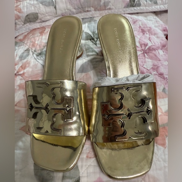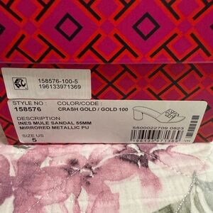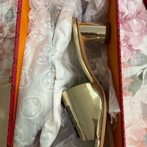 Brand New Tory Burch women size 5 Ines Mule Sandal metallic gold 158576