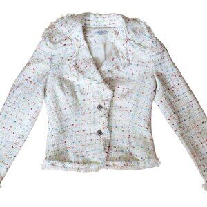 Step up your wardrobe with this elegant and rare vintage multicolor tweed blazer thats thickness can also couple as a nice coat. Its sophisticated design with unique antiqued buttons is perfect for both professional and casual settings.