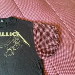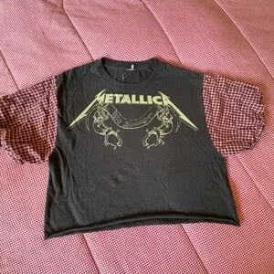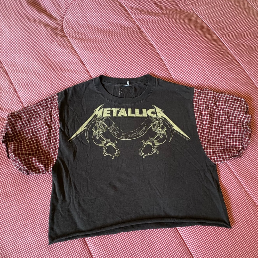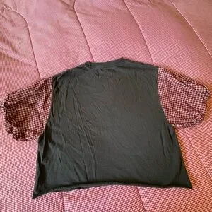 Plaid sleeves were added and shirt was cropped. This shirt is so cute I love it so much, I just don’t grab for it in my closet enough anymore
