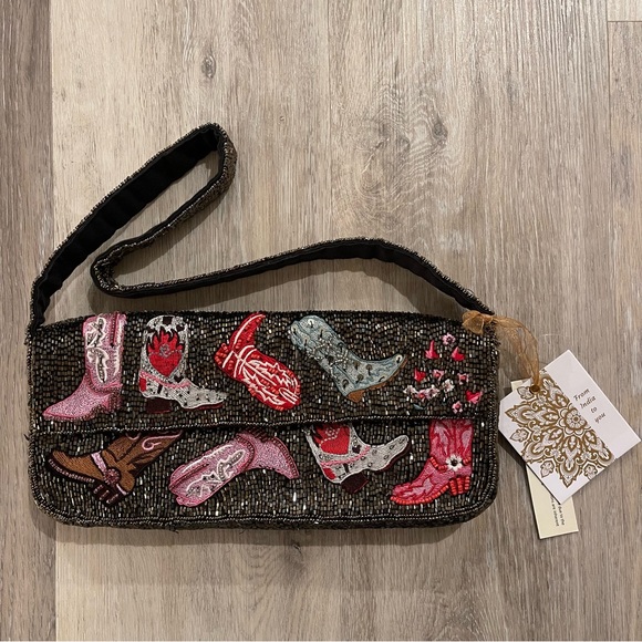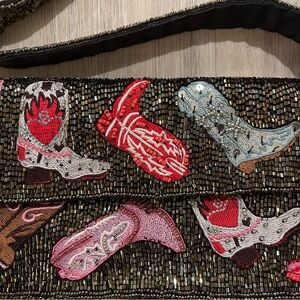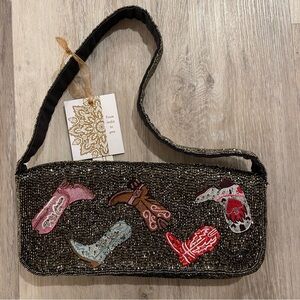NWT Cowboy Cowgirl Boots Beaded Shoulder Bag