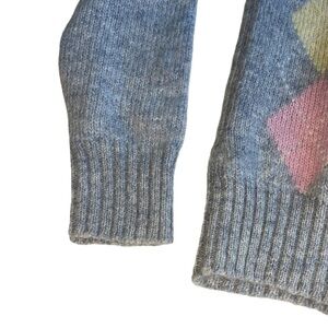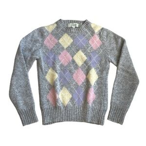 VINTAGE 100% WOOL ANNE CAMPBELL GREY PASTEL PINK YELLOW PURPLE ARGYLE PATTERN SWEATER