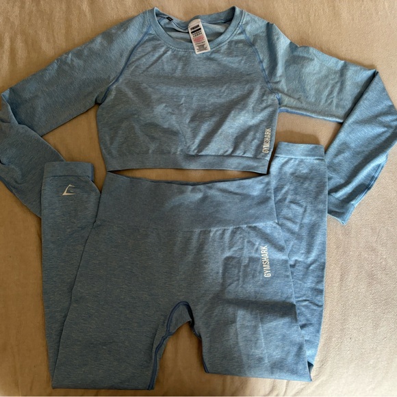 Light blue Gymshark set. Comfortable and stylish. Both top and bottom included. Both size L