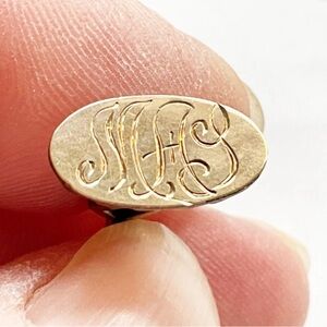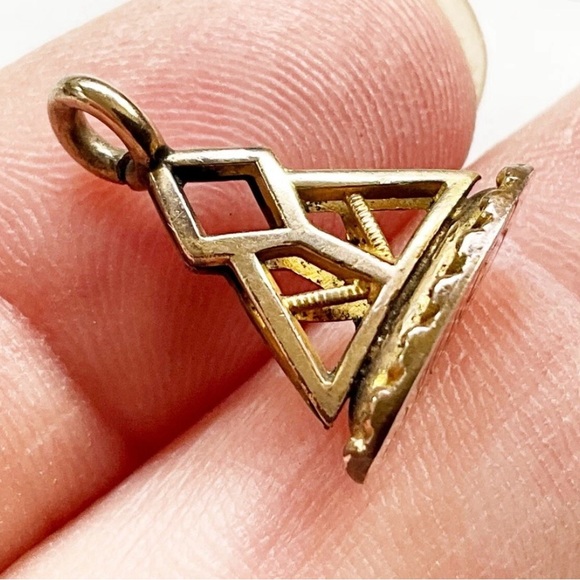 Antique Gold Filled Charm or Watch Fob...engraved with what appears to be “MAL” initials on the bottom…tiny in size and it measures about 11/16” by 1/2”...it weighs about 1.49 grams…with normal wear, scratches, commensurate of age and use...aged patina with polishing left up to the buyer...from the early 1900’s...an adorable antique gold filled charm or watch fob to add onto a chain, bracelet or watch chain!